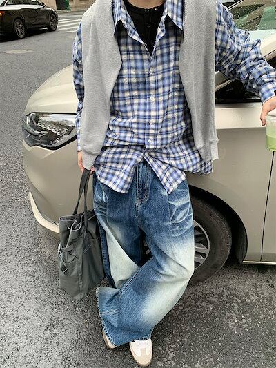 2024秋冬 韓国トレンドデニムパンツ ボトムス ジーンズ ファッション系スタイル ゆるダボ ジーンズ シルエット加工ゆったり レディース カジュアル 春夏 メンズライク