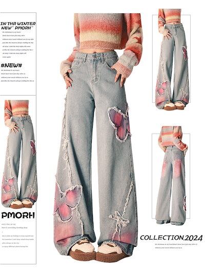 2024秋冬 デニムパンツ ボトムス ジーンズ 韓国ファッション系スタイル ゆるダボ ジーンズ シルエット加工ゆったり レディース カジュアル 春夏 メンズライク