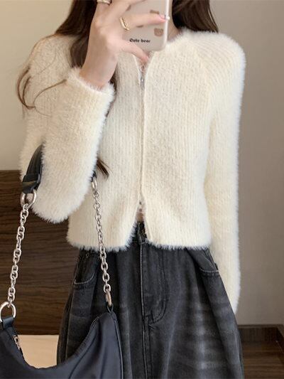 2024秋冬トップス 長袖 ニット 韓国トレンドコーデ セーター おしゃれ 色っぽ 女っぽスタンド丈カジュアルアップ きれいめ大人系ファッションレディース加工フェミニン フレンチ
