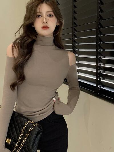 2024秋 長袖 TシャツVネックショート丈 カットソーワッペンK-POPトップス カジュアル配色韓国系ストリートへそ出しタイトネックスリーブ 肌見せ T ファッションレディースかわいいサイド衣装風冬