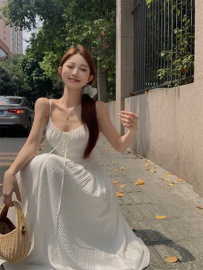 2024春夏ワンピース ノースリーブ スクエアネック ミニ丈 Aライン ゆったり 細見え 夏 白 ホワイト おしゃれ かわいい 甘め キュート ラブリー 韓国ファッション レディース お出かけフレンチ