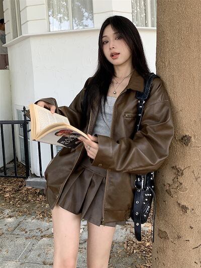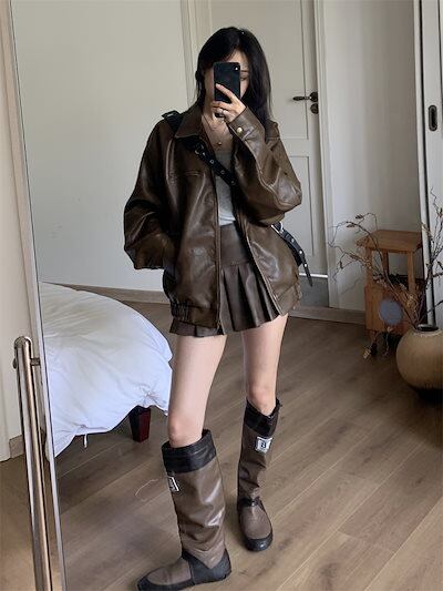 2024 秋冬 長袖 かわいい 2点セット ショート アウター ブラック 羽織り合成バイカラーカジュアル きれいめ 女っぽ きれいめ ファッション 色っぽ 女っぽカジュアルきれいめ大人