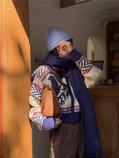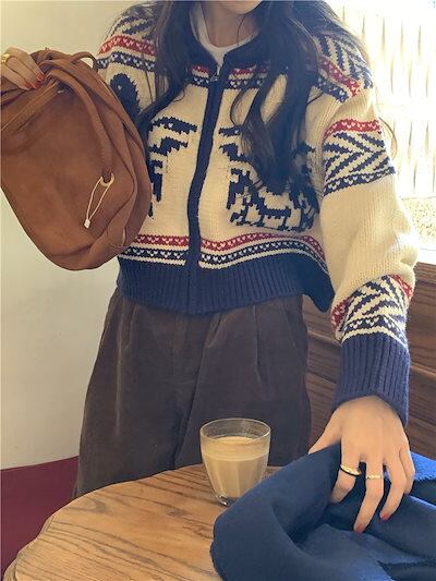 2024 秋 韓国 かわいい レディース ニットカーディガン アウター ブルゾン お出かけ アウター長袖セクシートップスサイド冬カジュアルファッション系お出かけフル丈