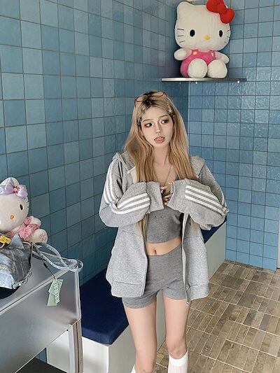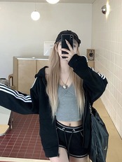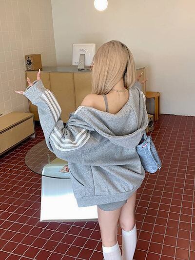 2024 秋トップス パーカー フード付き チャック 長袖 ストライプ ゆったり 細見え 秋 白 黒 おしゃれ かわいい ガーリー キュート 甘め 韓国ファッション レディース お出かけトラック