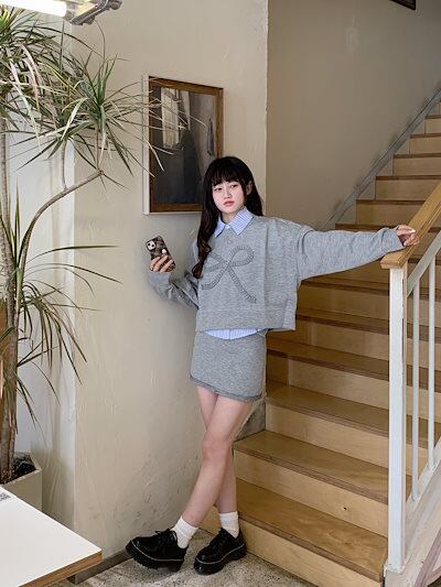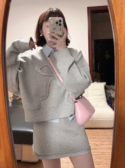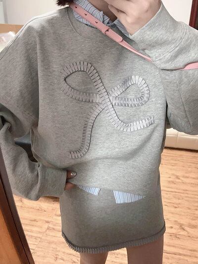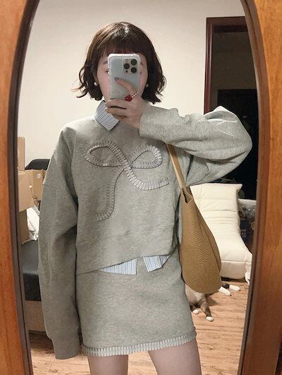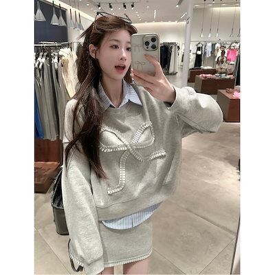 2024秋冬トップス ラウンドネック レイヤード風 重ね着 長袖 ゆったり 秋コーデ 黑 おしゃれ かわいい ラブリー キュート 韓国ファッション オフ レディース お出かけ 2点