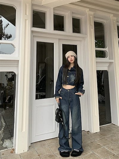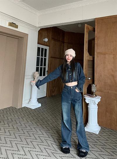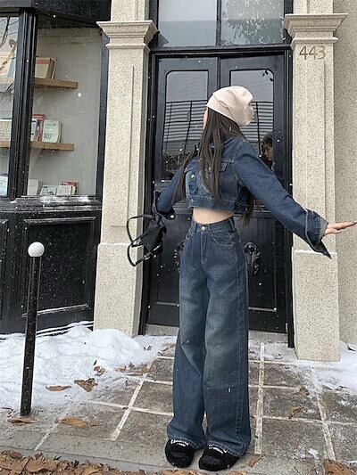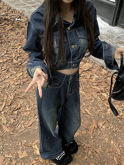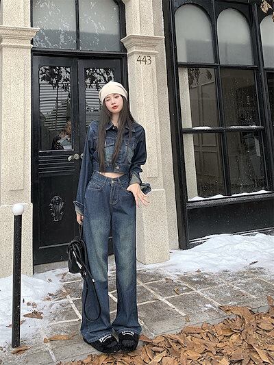 *「単品注文」2024 秋冬 トップス ジャケット パンツ セットアップ 上下セット ショート ワイド パンツ ストレート アウター 羽織り 加工 学生 上下セットカジュアル ハイウエスト