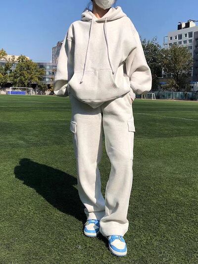 2024秋冬 2点セット選べる2タイプ 厚手 裹起毛 長袖フード付きトパーカーレーナーロングパンツレディースかわいい きれいめ サイズ 大人可愛いゆったりファッション系コーデ衣装丈上下シルエットブル