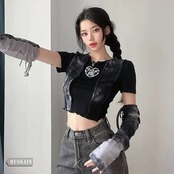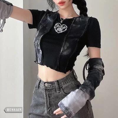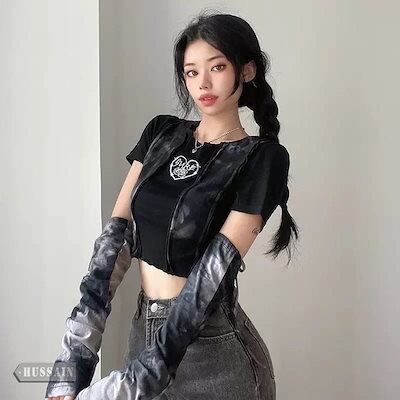 2024秋 長袖 Tシャツ ショート丈 カットソー トップス カジュアル 配色韓国系ストリート丈へそ出しK-POPタイトネックスリーブ 肌見せ T ファッションレディース かわいいハーフ衣装風冬付き