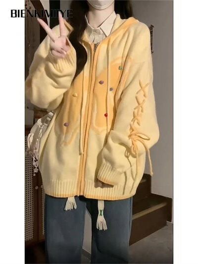 【 3日出荷 】カーディガン 2024 秋新韓国 ニットカーディガン 百掛け 日系バタフライカーディガンクリームイエローセーターゆったりニットコート レディースファッション