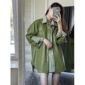 シャツ 長袖 2024 秋 新ブラウス アボカドグリーン長袖シャツレディースジャケットブラウス