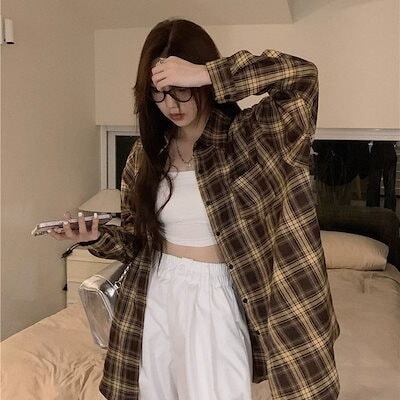 シャツ 長袖 2024 秋 新ブラウス チェック柄長袖シャツブラウスジャケットトップス