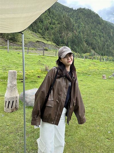 2024 秋 新作ライダースジャケット アウター ゆったり ショート pu レザージャケット 韓国ファッション 流行り トップス 革レディース 着痩せコート ジャケット