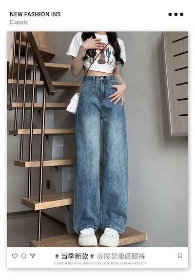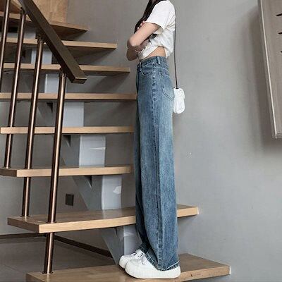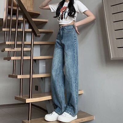 デニムワイドパンツ 秋新作 着痩せ ワイドパンツ ストレートシリンダ ゆとりがある ドレープパンツ 復古 韓国ファッション 百掛け やせて見える