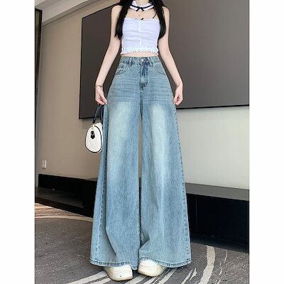デニムワイドパンツ 秋新作 ワイドパンツ 薄い色 薄い 垂下感 着痩せ ゆとりがある ストレートパンツ 韓国ファッション 百掛け やせて見える