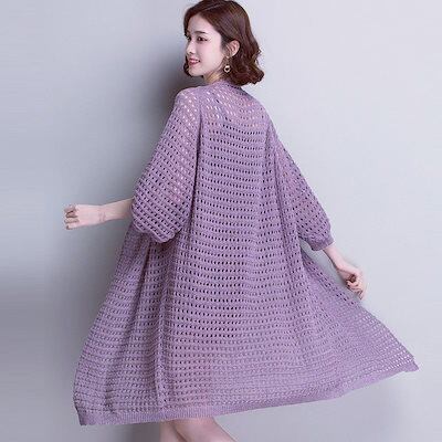 カーディガン 2024春新作 韓国ファッション 着痩せ 大きいサイズ セミロング丈 ニット カーディガン レディース シャツ UVカット日焼け止め 薄手 Tシャ カーディガン