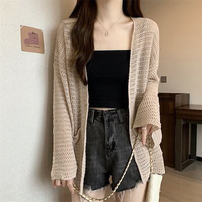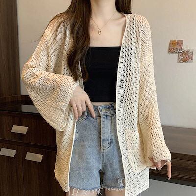 カーディガン 2024春新作 韓国ファッション ゆったり 着痩せ セミロング丈 ニット カーディガン 紫外線対策 トップス レディース シャツ UVカット日焼け止め 薄手 Tシャ カーディガン