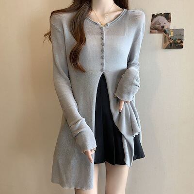 カーディガン 2024春新作 韓国ファッション 百掛け アイスシルク ニット 着痩せ カーディガン 紫外線対策 トップス レディース シャツ UVカット日焼け止め 薄手 Tシャ カーディガン