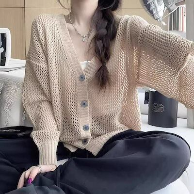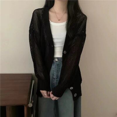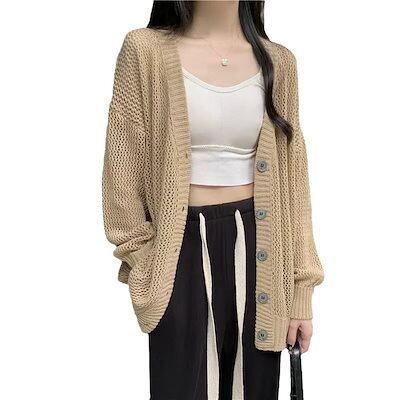 韓国ファッションカーディガン ベーシックニット ニットカーディガン ゆったりスウェットアウター 着痩せ 長袖トップス ニットアウター