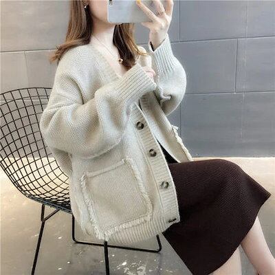 韓国ファッションカーディガン ベーシックニット 着痩せ ニットカーディガン ゆったりスウェットアウター 長袖トップス ニットセーター アウター