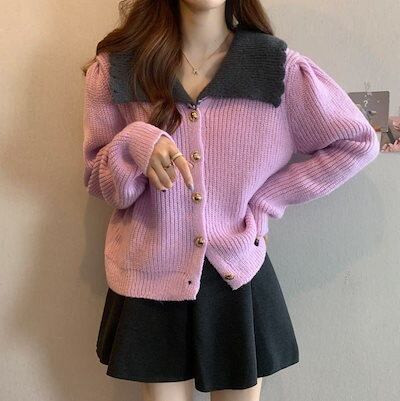 韓国ファッション カーディガン ベーシックニット ニットカーディガン ゆったりスウェットアウター 長袖トップス 着痩せ ニットセーター