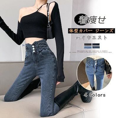 春 夏 レディース ハイウエスト ジーンズ ブルー ブラック 着痩せ 体型カバー ジーンズ ハイウエスト 体型カバー
