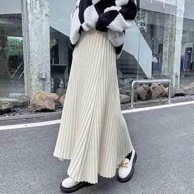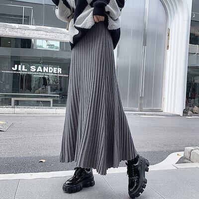 秋冬プリーツ ハイウエストカットスカート女子丈の毛糸A字大振り プリーツスカート ロングスカート 可愛い ハイウエスト タイトスカート 流行り 百掛け スカート