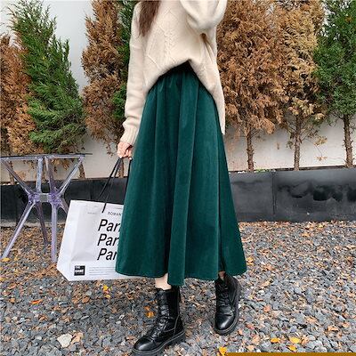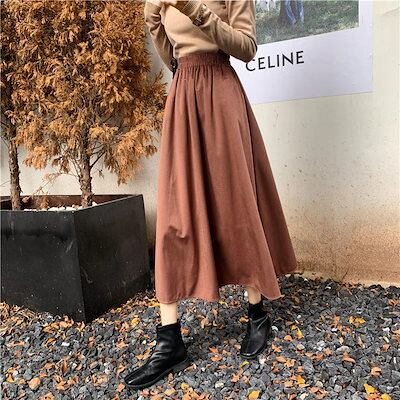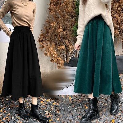 秋冬 コーデュロイ 保温 スカート スカート ポケット 流行り 防寒 百掛け カート ロングスカート 可愛い セミロング