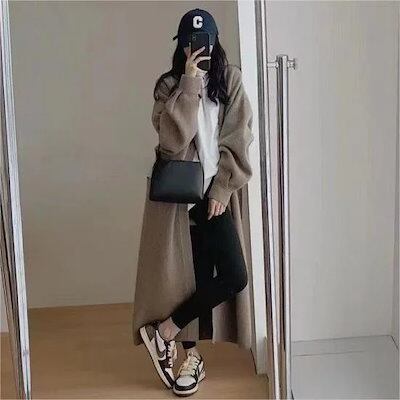 新品秋冬の コート 厚手コート ニットラシャコート ロング丈 レディース トップスアウター トレンチコート ロングコート リブ 可愛い 着痩せ ゆったり 体型カバー シン 福袋