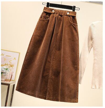【2枚購入で 2oo円OFF!】秋冬 コーデュロイ 保温 百掛け カート ロングスカート 可愛い セミロング スカート スカート ポケット 流行り 防寒