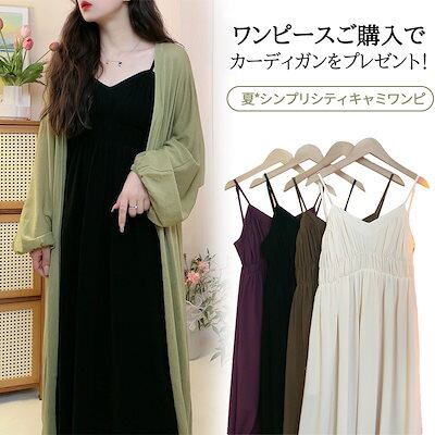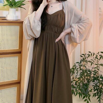 一部即納 夏秋 新作 セミロング キャミソールワンピース +ニットカーディガン シャツ アウター 二点セット ノースリーブワンピース ノースリーブ ドレス