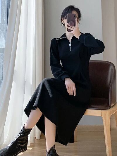 長袖ワンピース レディース 小柄 高級感 春秋 気質 インナー ワンピース 着痩せ 結婚式 発表会 演奏会 きれいめパーティードレス