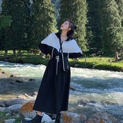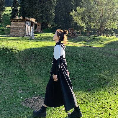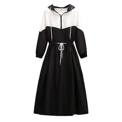韓国ファッション コントラストカラー ロング ワンピース 春秋 長袖 ワンピース ウエスト引き締め 着痩せ スウェットワンピース