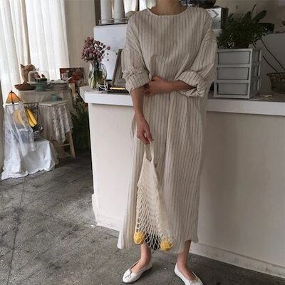 日系 春秋 シャツワンピース 長袖 ワンピース ゆったり 怠惰風 快適 ロング ワンピース 長袖 ワンピース
