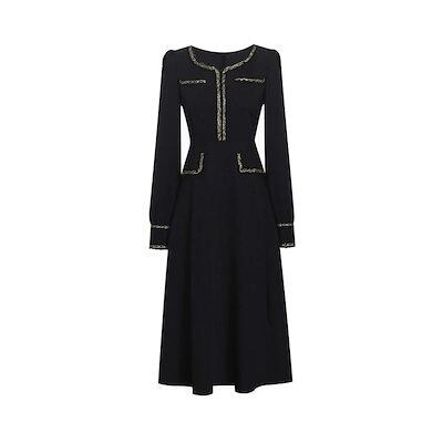 韓国ファッション 春秋 小香風 フェイクレイヤード 高級感 大きいサイズ ニット ワンピース 長袖 気質 ロング ワンピース