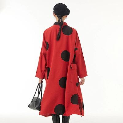 可愛いドットシャツワンピースロング長袖ブラウスレディース韓国ファッション秋服着痩せ効果リネンカーディガン 母の日