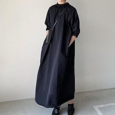 日系ワンピース2024秋の新型女装純色立襟スカート気質a字スカート中ロングスカート長袖