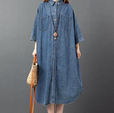 大きいサイズ デニムロングワンピース デニム デニムワンピース 七分袖 きれいめ レディース 春 夏 秋 ロング デニムワンピ サロペット マキシ丈 Aライン ポケッ