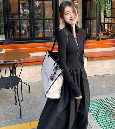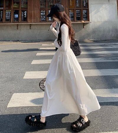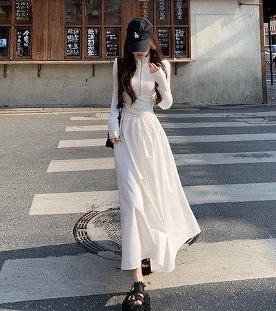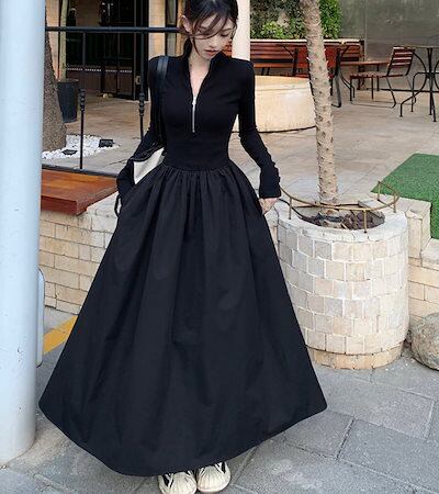 2024 秋冬 ロングワンピース ロング丈 ワンピース 長袖 韓国系ファッション フィット カジュアル パーティー きれいめ ハイ ハーフリブフレンチスタイルアップ 色っぽ 女っぽ カジュアル大人