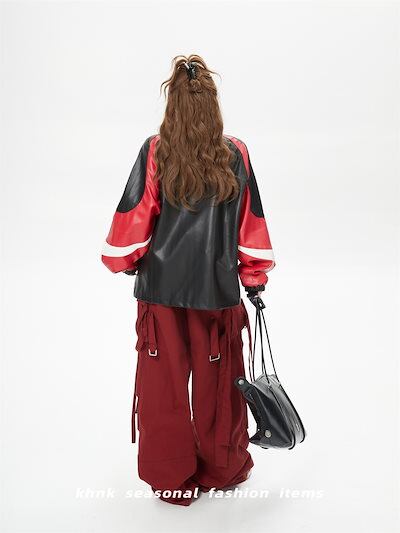 2024秋冬 長袖 ジャケット かわいい ハイネック スタンドネックショート アウター 羽織り合成バイカラーフェイク黑カジュアル シルエットゆったりファッション系サイズ 色っぽ 女っぽきれいめ大人っぽ