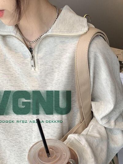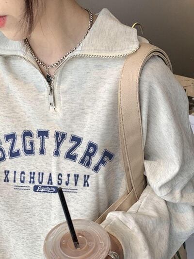2024 秋冬 2TYPE 裹起毛トップス長袖 かわいいK-POPTロングレディース韓国風ロゴ衣装カラールーズゆったりカジュアルハーフおしゃれサイズスリーブシルエットファッション系サイドシャツフット