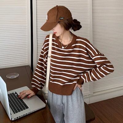 2024秋冬トップス カーディガン ニット セーター ラウンドネック メロウ襟 ボタン ハート 長袖 ボーダー柄 春 ゆったり 黒 赤 韓国ファッション レディース おしゃれ かわいい カジュアル お