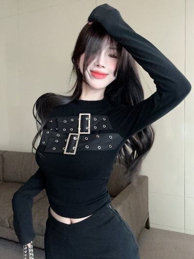 2024 秋冬 韓国 女度を格上げ tシャツ ファッション トップス 韓国系 長袖 ショート薄手フィット プリント レイヤード 重ね着 肌見せ 女っぽハイフレンチタイト丈 レディース T
