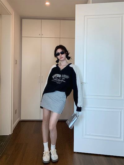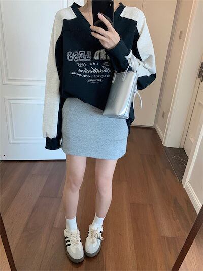 2024 秋冬トレンド トップス Vネック長袖かわいいTシャツレディース韓国風衣装ルーズゆったりカジュアルおしゃれサイズスリーブシルエットファッション系サイドシャツフットバイカラーニュートロ