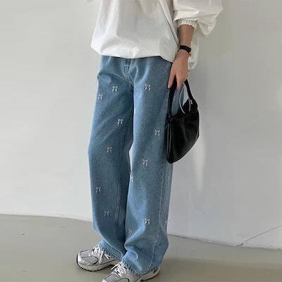 2024秋冬 パンツ デニム ジーンズ ハイウエスト 脚長効果 美脚効果 細見え カジュアルレッグおしゃれ かわいい 韓国系ファッション レディース お出かけ