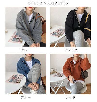 ニット カーディガン レディース 秋 冬 フード付き ニットパーカー セーター 長袖 パーカー さっと羽織れる ニット 羽織 ゆったり フェミニン 着回し シンプル カジュアル 体型カバー 柔らかい