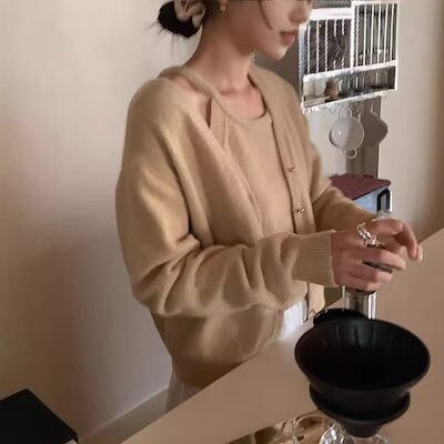 韓国ファッション レディース ニットカーディガン 可愛らしいニット 2点セットカーディガンカジュアルセーター