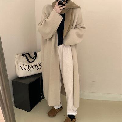韓国ファッション ゆったり セミロングニットカーディガン レディース 無地百掛けカジュアル軽薄 カーディガン 大きいサイズ体型カバー ニットセーター 着痩せ 秋アウター