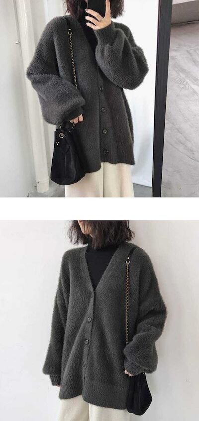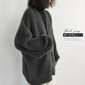 シャギー ニットカーディガン アウター トップス カーディガン シャギー シャギーニット ニット セーター ボリュームスリーブ 長袖 羽織 レディース ゆったり オーバーサイズ 体型カバー ミディア