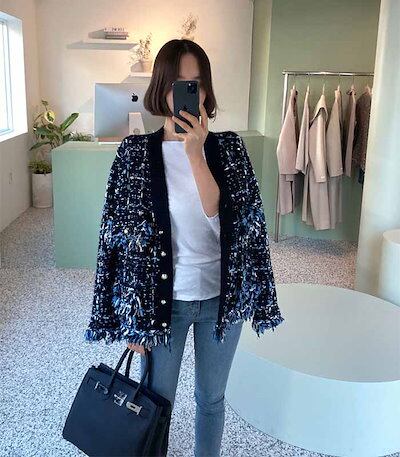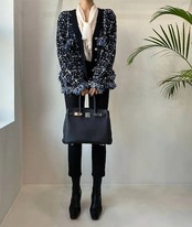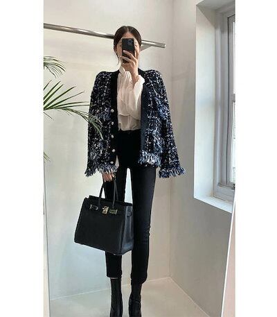 ジャケット レディース カジュアル ツイードジャケット ノーカラー カーディガン ショート丈 トップス 長袖 フェミニン 大人カジュアル おしゃれ お洒落 デイリー ママ 服 お出かけ オフィス