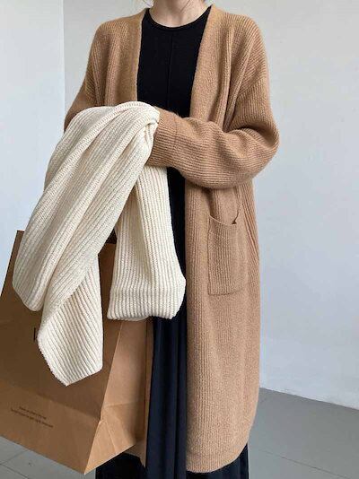 ニットカーディガン ロング カーディガン レディース 秋冬 長袖 厚手 ロングコート ロング コート アウター 羽織り オフィス ゆったり きれいめ おしゃれ ニット セーター ロングカーデ トッ